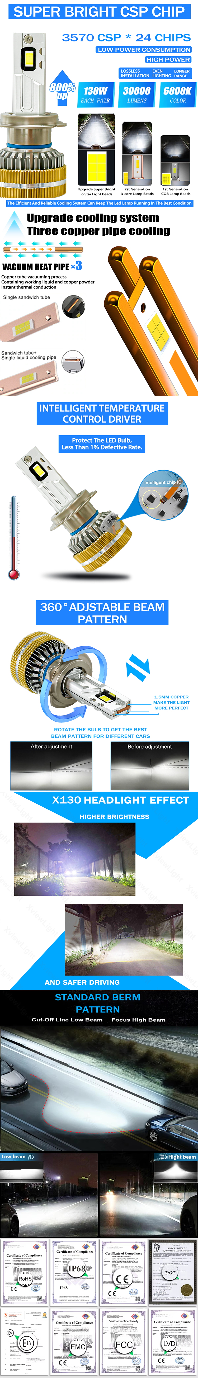 130W LED Car Headlight Bulbs for Bright Night Driving and Wholesale SupplyXVL X130 LED Headlights – 130W 30000 Lumens